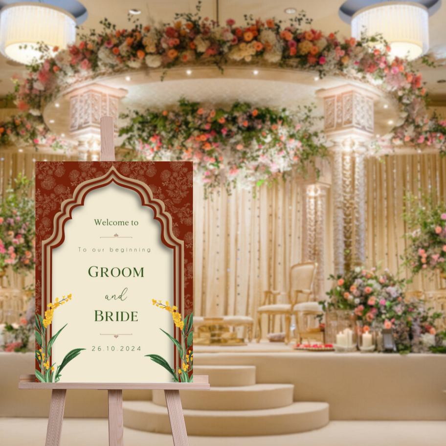 LEC Digital's Hindu Wedding Welcome Sign is perfect for creating a memorable first impression. Featuring best quality prints that provide a sharp design finish, this sign beautifully complements your event's aesthetics while warmly welcoming your guests. Trust LEC Digital to add elegance and charm to your wedding celebration. Let our commitment to quality and excellence enhance your special day.